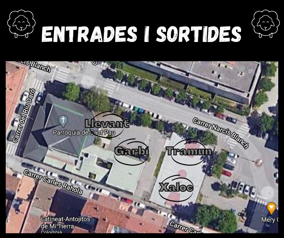 Finalment, aquet any s’aplica un protocol d’entrades i sortides. Tal com us vam dir, us adjuntem una imatge d’on es trobarà cada grup. Recordem que els participants només poden venir acompanyats per una persona per tal d’evitar aglomeracions.