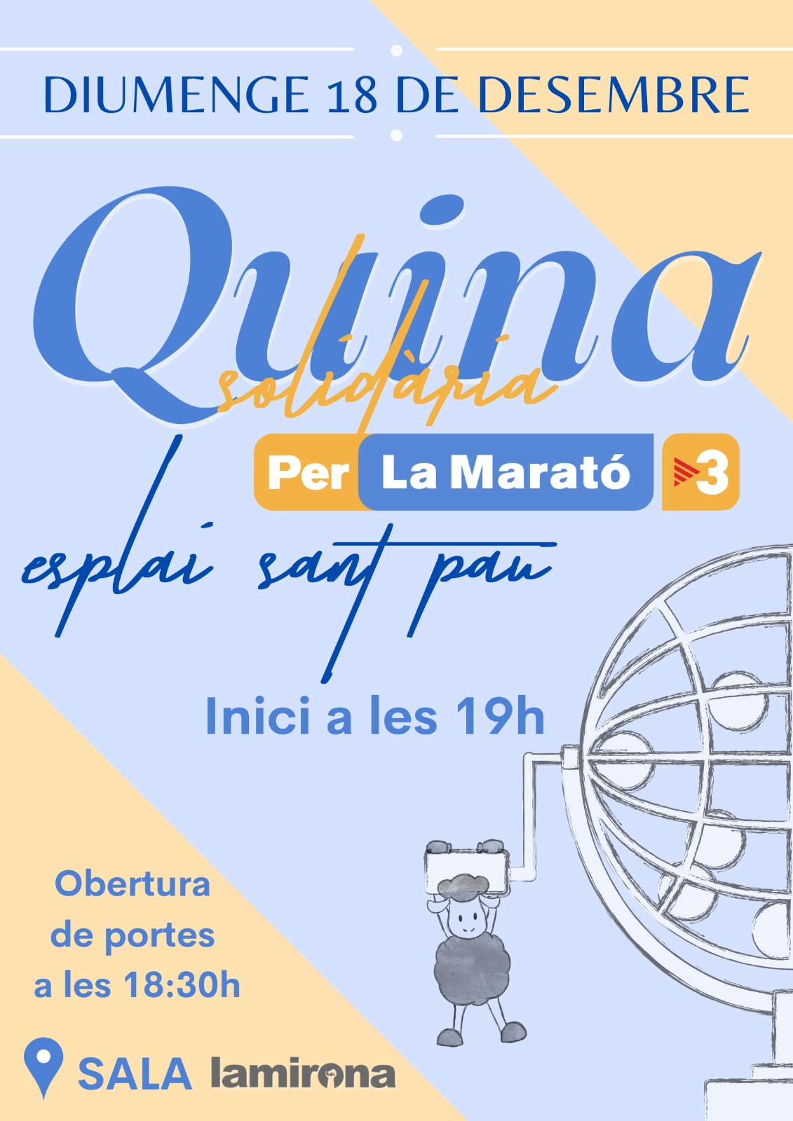🎄Un any més arriba el vostre dia preferit de l’any!! Ni tió, ni dinars familiars ni sopar de cap d’any, ni nadal! Arriba de nou…. la QUINA SOLIDÀRIA per LA MARATÓ DE TV3 organitzada per l’ESPLAI ST PAU!!!