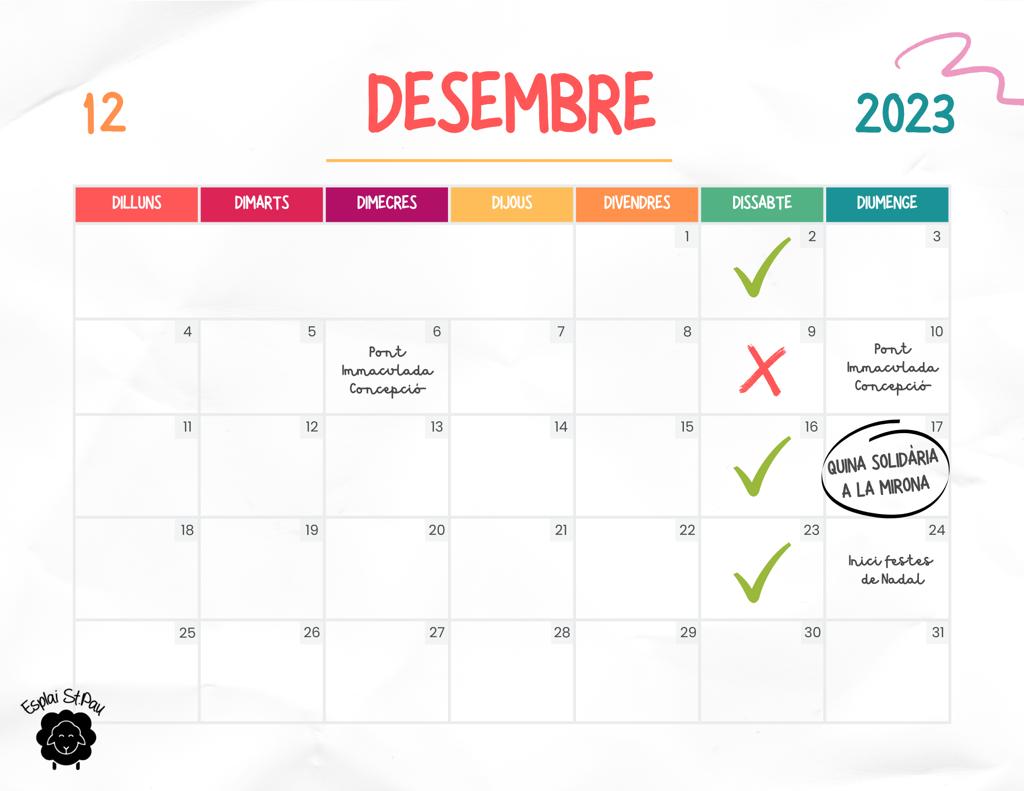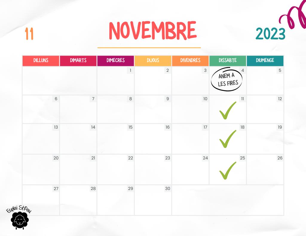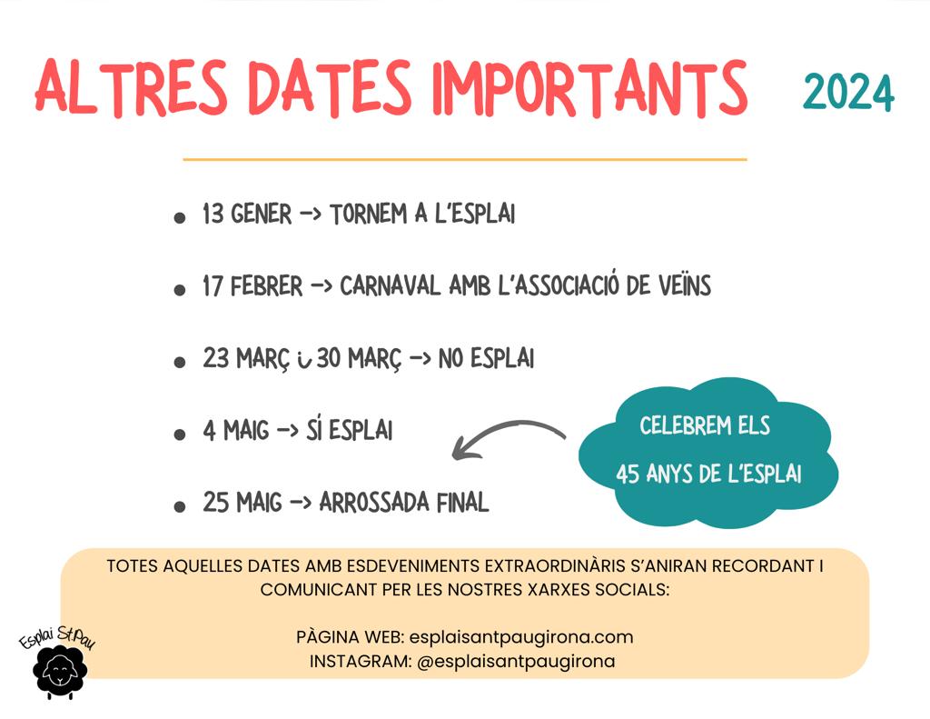CALENDARI PRIMER TRIMESTRE 17 d'Octubre de 2023 Esplai Sant Pau General Bona tarda Sant Pauencs i Sant Pauenques!A continuació us deixem el calendari d’aquest primer trimestre: Comparte: Feu clic per compartir a X (S'obre en una nova finestra) X Feu clic per compartir al Facebook (S'obre en una nova finestra) Facebook M'agrada S'està carregant...